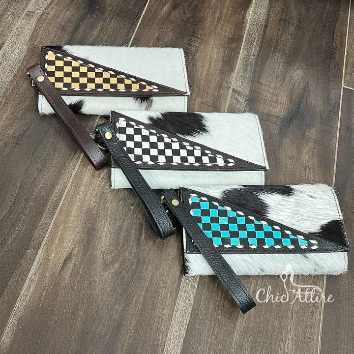 Nombre del producto:Cartera de cuero genuino con diseño a cuadros y trabajada a mano