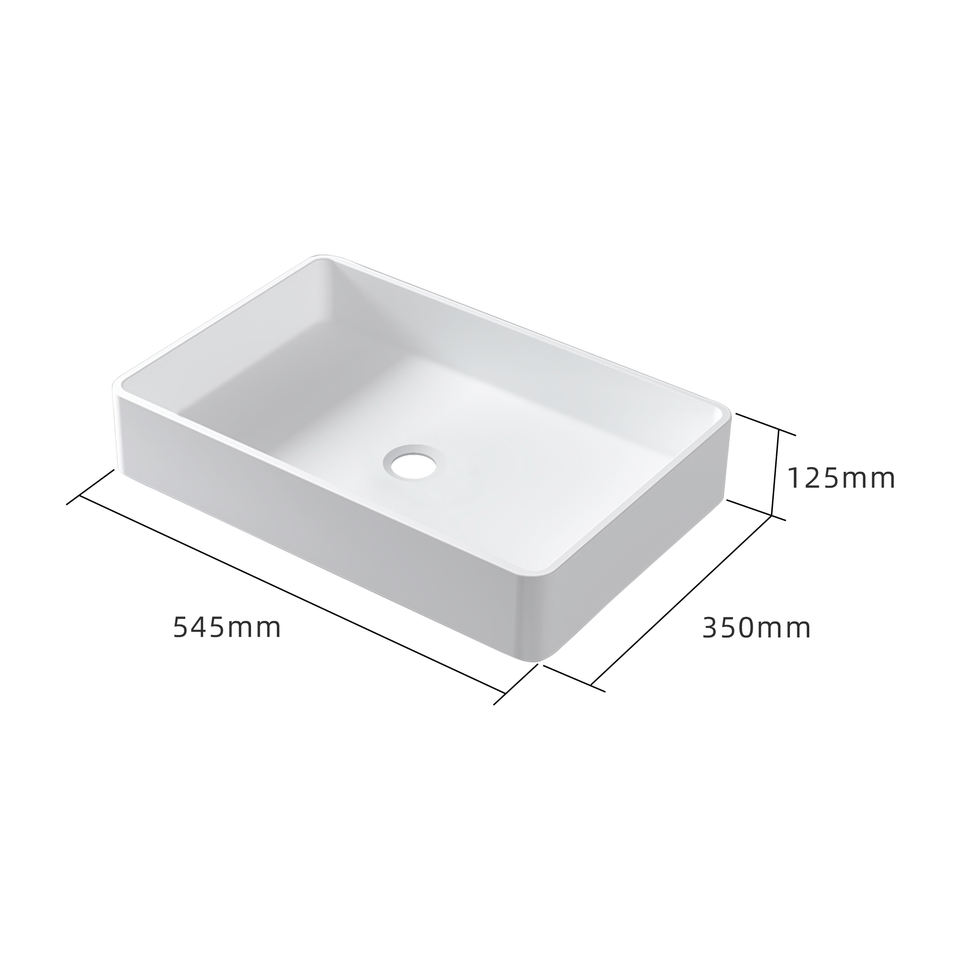 Lavabo de Baño Rectangular Blanco Mate de Superficie Sólida, Ecológico, Fácil de Limpiar, Duradero y Moderno, para Uso en Hogar y Hotel, OEM/ODM