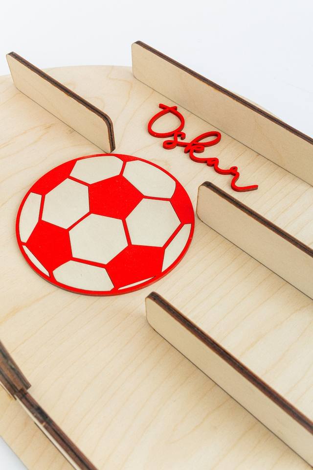 Estante para Tonie Modelo 10020 de Minghang, OEM ODM, Juguete de Madera con Motivo de Fútbol, 30 Figuras, Caja de Juguetes y Organizador