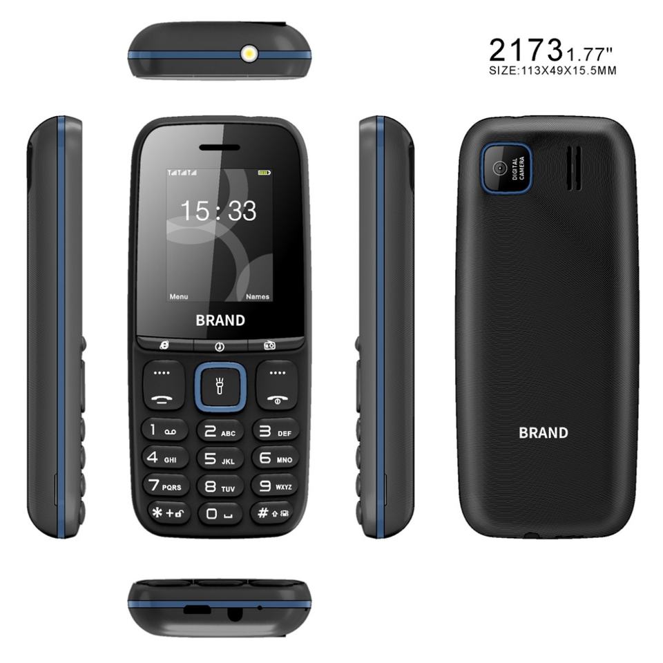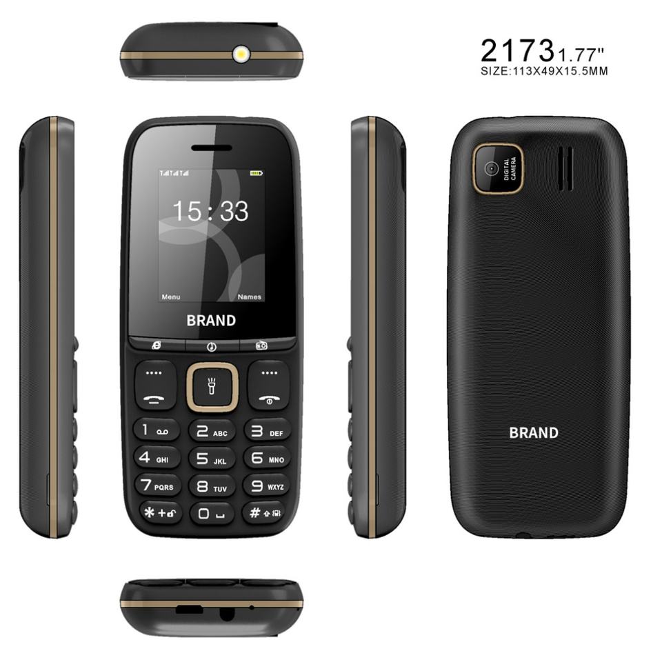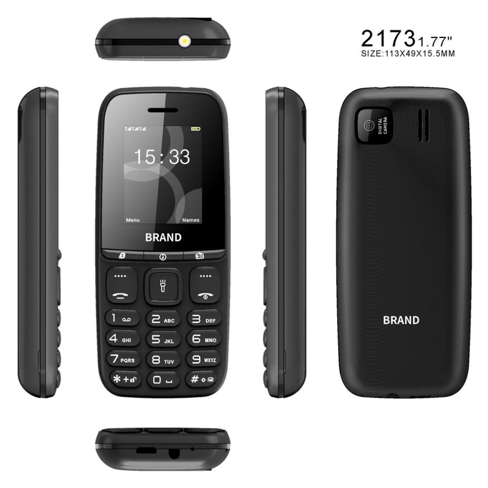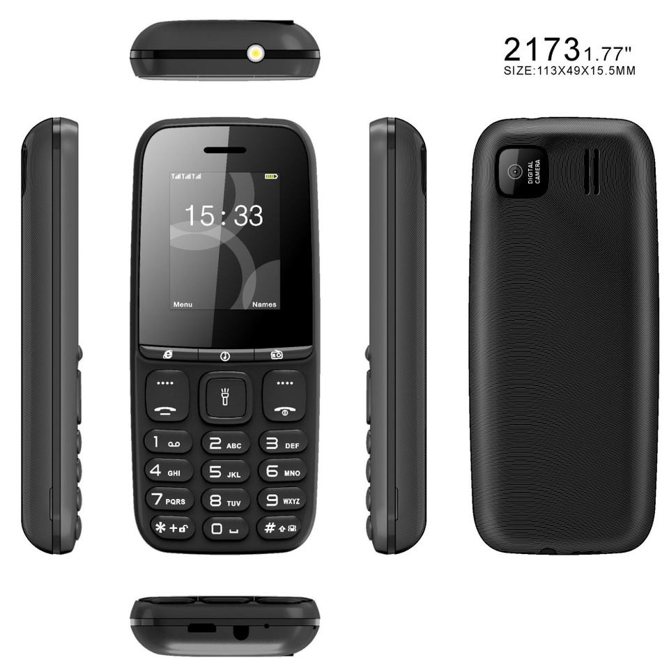 Teléfono Móvil OEM ODM Personalizado de Fábrica, 2173 GSM, Pantalla de 1.77 Pulgadas, Teclado, Doble SIM, en Stock