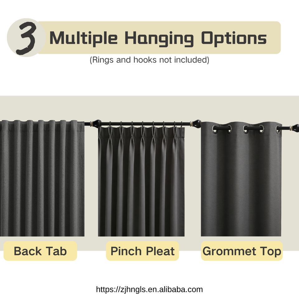 Cortinas Opacas Modernas OEM/ODM de 2 Paneles, 100% Poliéster Tejido, para Dormitorio y Sala de Estar, con Cenefas, 100% Bloqueo de Luz