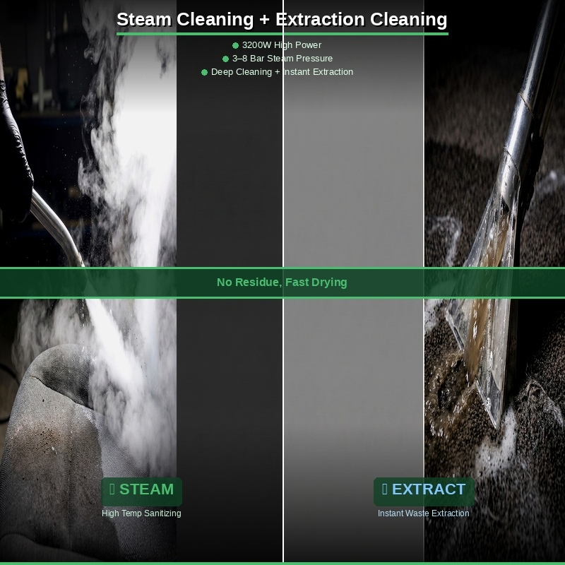 Limpieza con agua caliente/Vapor + Extracción de agua