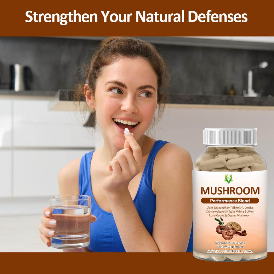 Cápsulas Mushromm OEM ODM Suplemento de rendimiento para alimentar tu mente Fortalece tu defensa natural para adultos