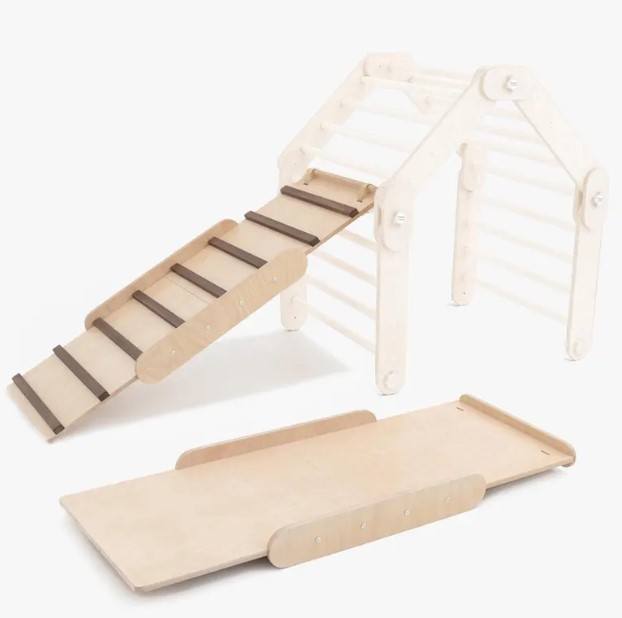 OEM ODM Natural Classic Montessori Gimnasio Sala de juegos Gimnasia de madera Complejo Juguetes Transformable Triángulo Escalador Rampa