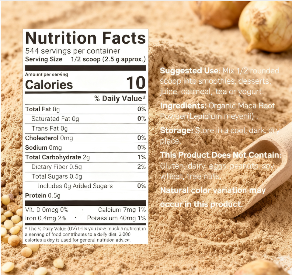 Nombre del Producto:Polvo de Raíz de Maca Orgánica para Apoyo Energético y Antioxidante