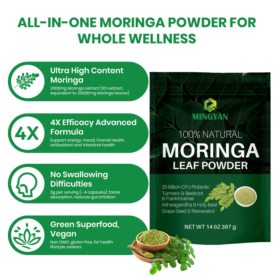 Polvo de Moringa Orgánico OEM/ODM, Polvo de Hoja de Moringa y Probióticos para el Apoyo Inmunológico, Rico en Vitaminas, Minerales y Antioxidantes