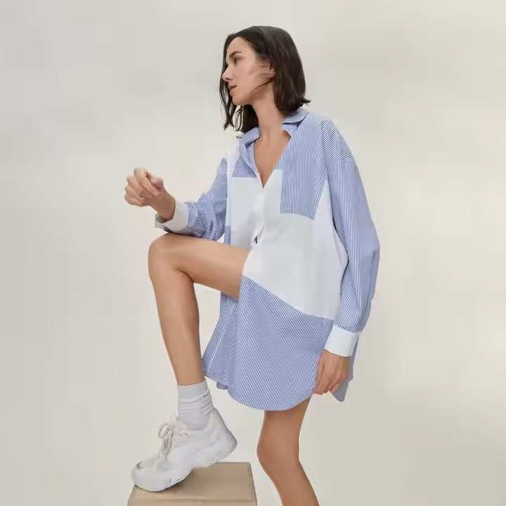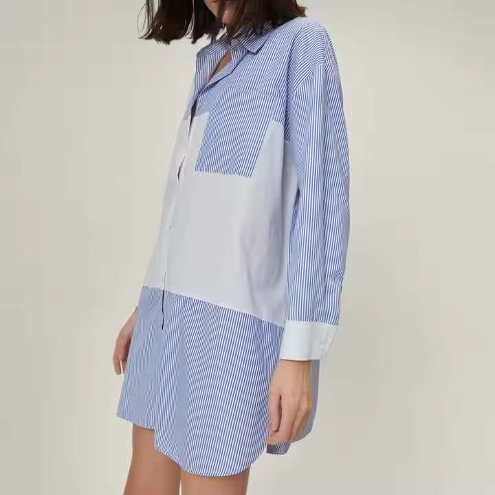 OEM ODM Camisa Patchwork a Rayas Verano Playa Vacaciones Mujeres Verano Elegante Mujer Señora Vestido Casual