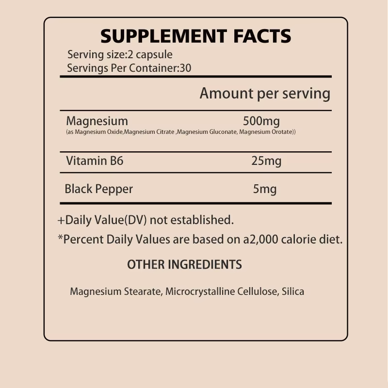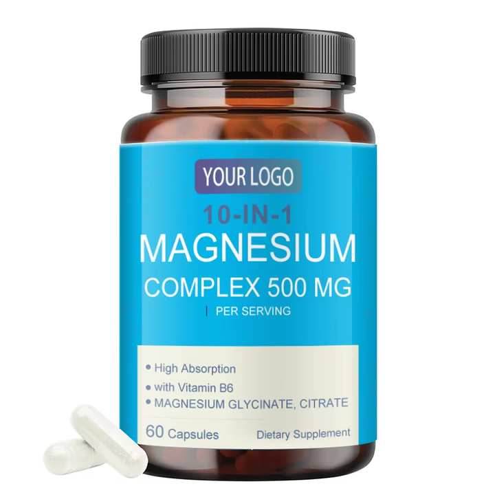 OEM/ODM Etiqueta Privada 10-en-1 suplemento de cápsula de complejo de magnesio con vitamina B6 compatible con suplemento de Salud Ósea y cardíaca