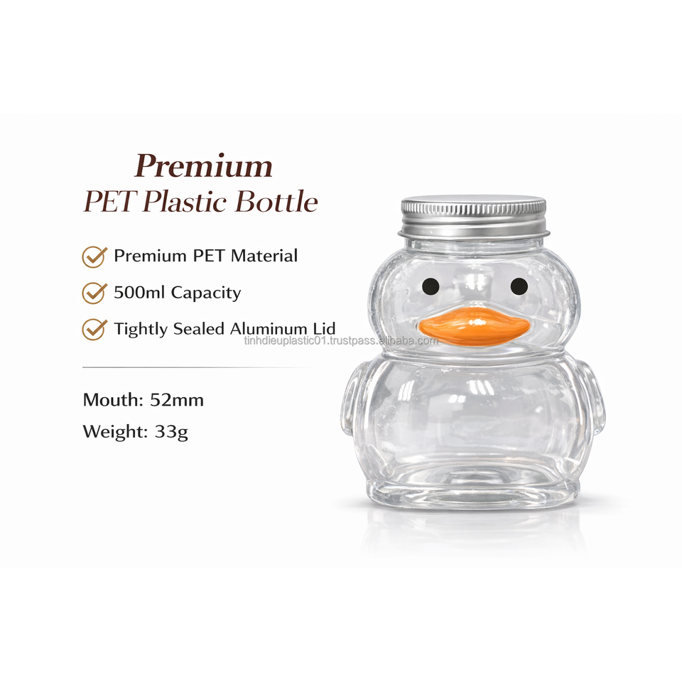 Botella de Plástico PET de 500ml con Tapa de Aluminio, Ligera (33g), para Jugos y Smoothies, Fabricación en Vietnam, Venta al Por Mayor, OEM, ODM, RTS