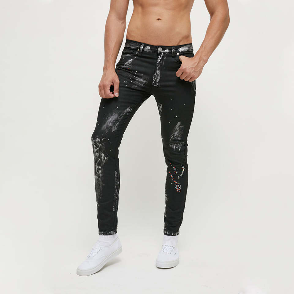 Pantalones Vaqueros Ajustados con Raya Lateral, Diseño Desgarrado, Logotipo Personalizado, Venta al Por Mayor, Moda para Hombre, OEM ODM