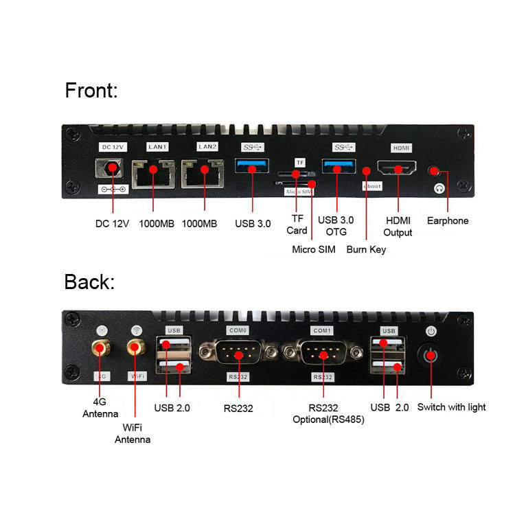 Mini PC Industrial OEM ODM Rockchip RK3588 Octa Core, 8GB RAM, 64GB/128GB ROM, Puerto Ethernet de 1000MB, RS232, RS485, Linux, Android 12