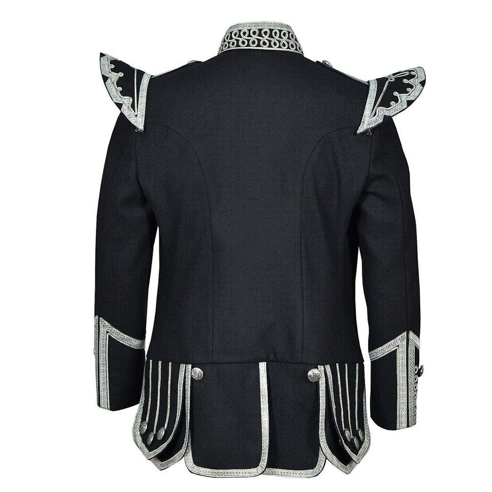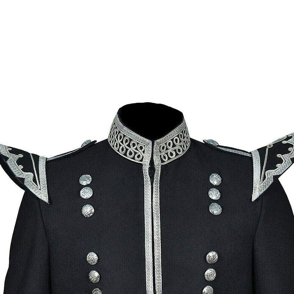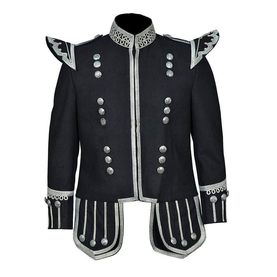 Servicio OEM ODM disponible, chaquetas de dobletes de banda de tubería en blanco y negro personalizadas, chaquetas de dobletes de banda de tubería de calidad superior