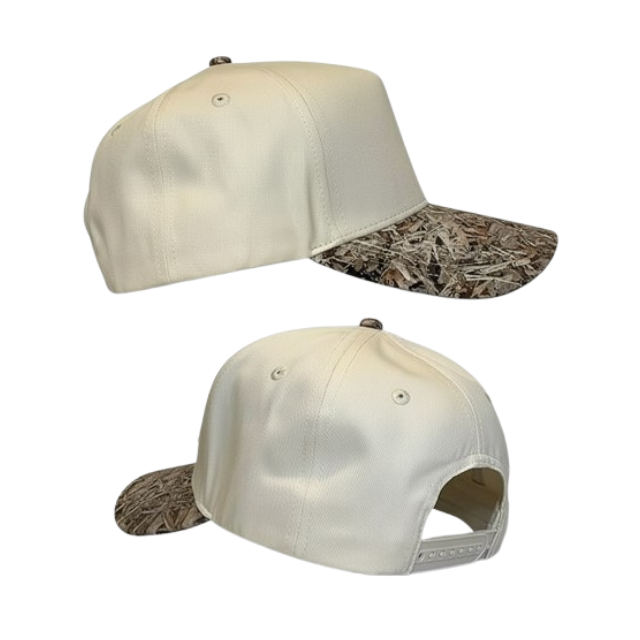 Gorras de Béisbol de Cinco Paneles Estructuradas de Dos Tonos OEM ODM, Gorras Deportivas con Visera Curva de Camuflaje, Logotipo Bordado Personalizado, Cierre a Presión para Caza
