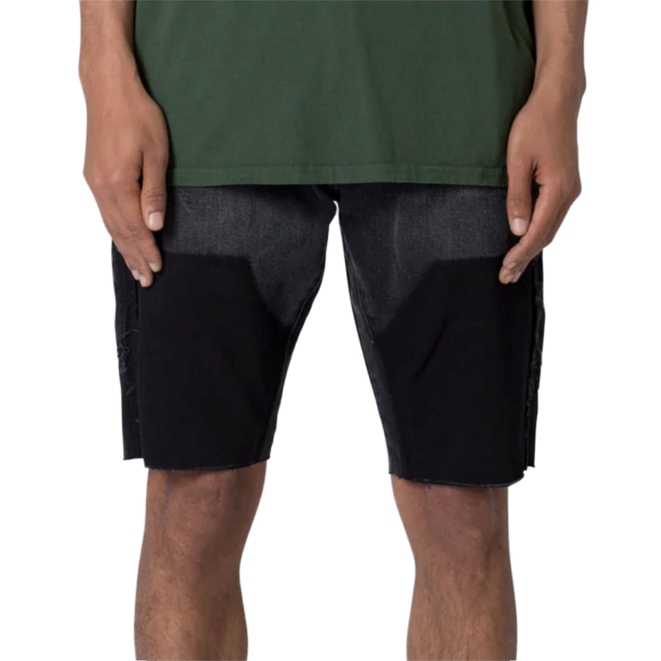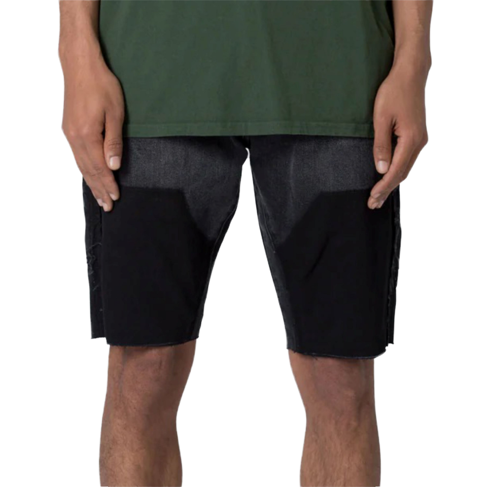 OEM y ODM Vintage Mid Cargo Baggy Jorts Hombres Transpirable Denim Doble rodilla Pantalones cortos de carpintero Lavado Pintura en aerosol Verano