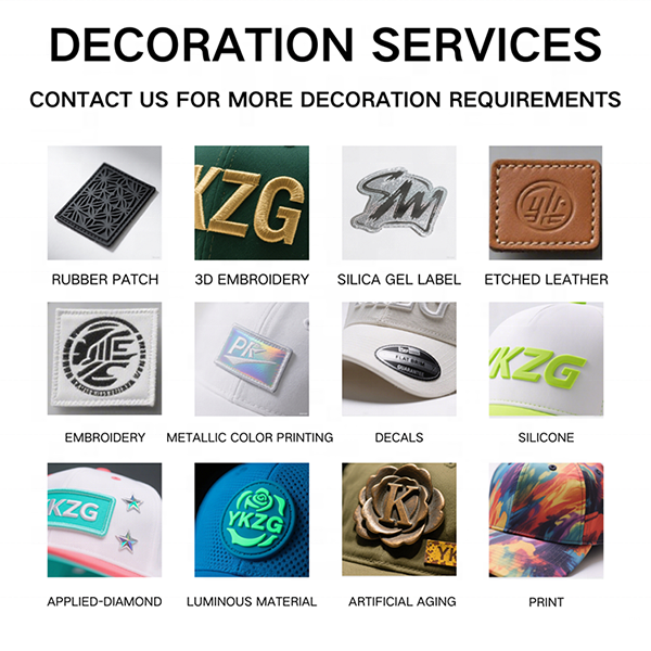 Posición del logotipo:Ala/visera, Panel frontal, Panel izquierdo, Panel derecha, Parte trasera curva