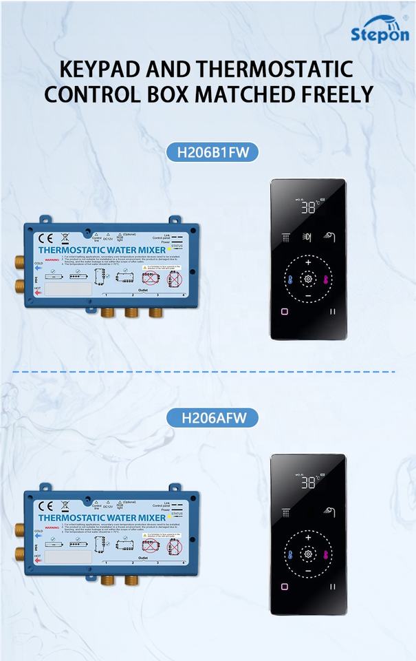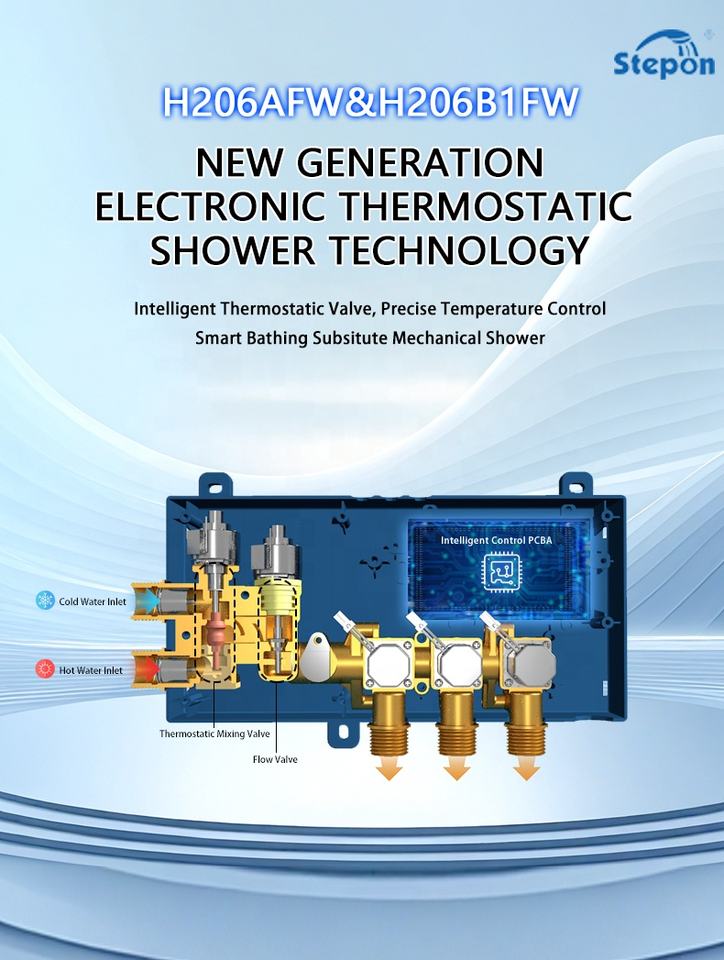 Set de ducha digital inteligente Stepon OEM/ODM con WiFi y app, controlador del sistema, empotrado, mezclador de ducha 2 y 3 vías, válvula termostática