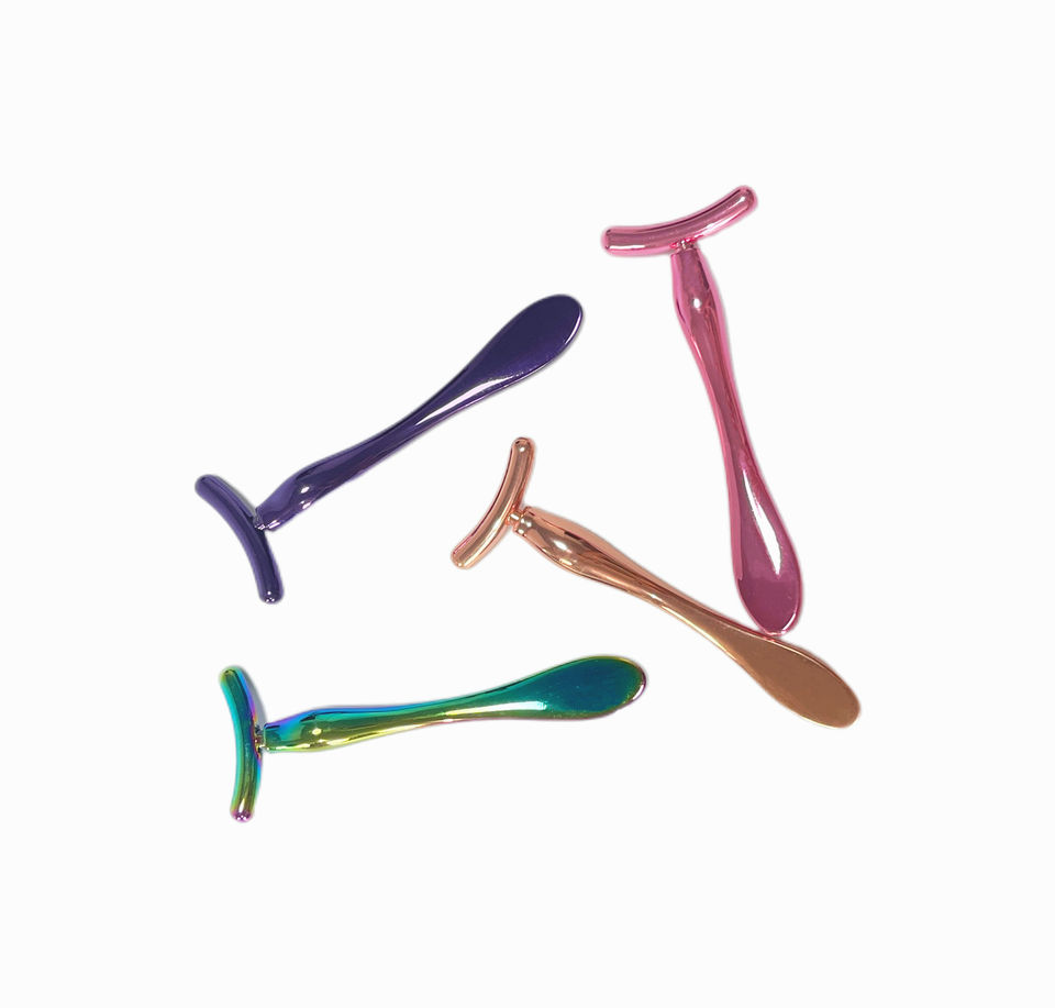 OEM/ODM aleación de zinc Metal maquillaje espátula ojo Guasha masajeador logotipo personalizado crema de ojos cosmético espátula cara Gua Sha herramienta