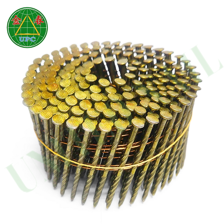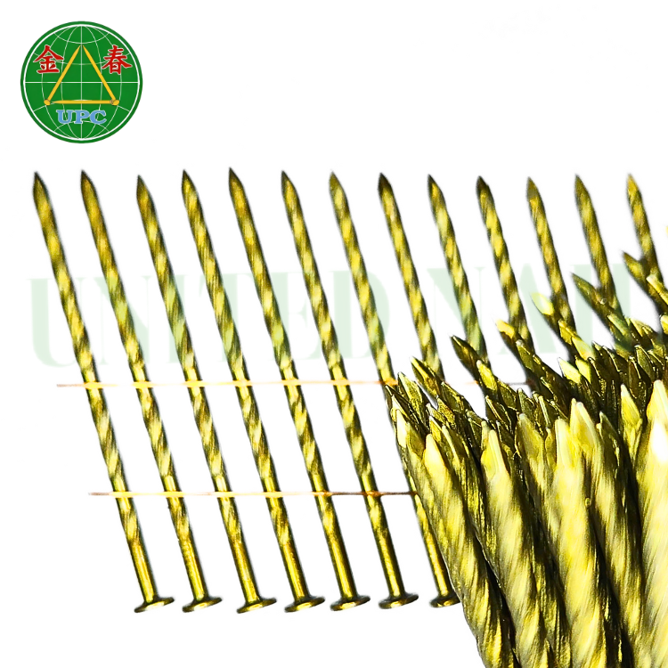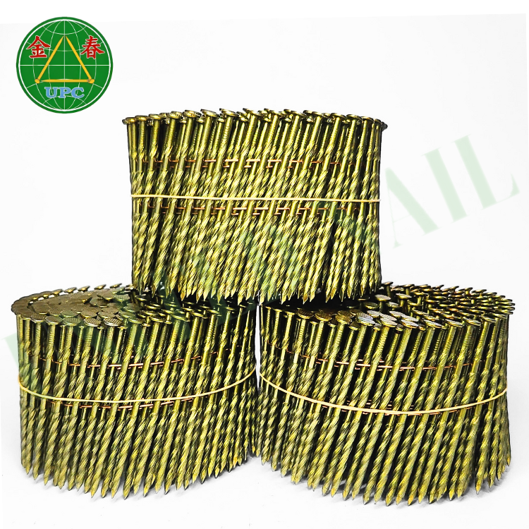 OEM/ODM para 15 grados 3 "x 0.120 4500 piezas bobina paleta clavo liso y vástago de tornillo y revestimiento amarillo para clavadora de bobina neumática