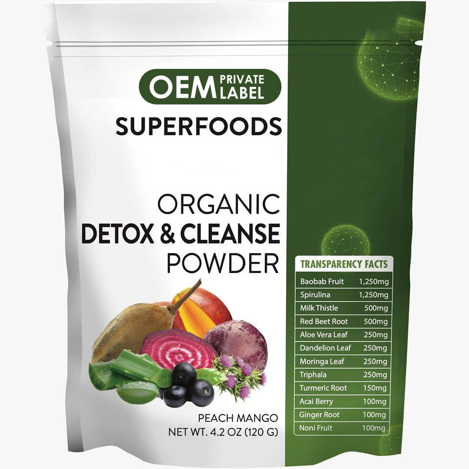 OEM Polvo Desintoxicante Orgánico, Superalimentos Desintoxicantes Diarios, Suplemento Antioxidante con Clorofila, Ficocianina y Electrolitos