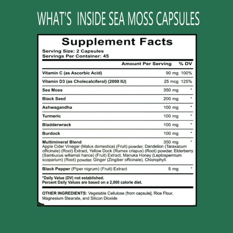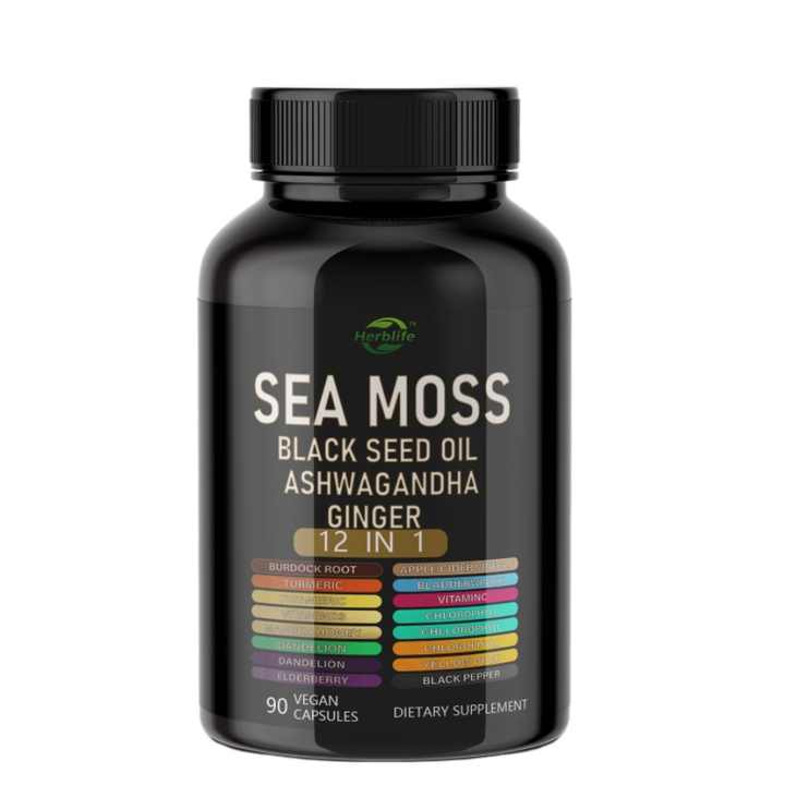 Cápsulas de Musgo Marino Orgánico OEM, Aceite de Semilla Negra y Ashwagandha para el Apoyo Inmunológico y Energético, Suplemento Vegano Sin OMG para Hombres y Mujeres