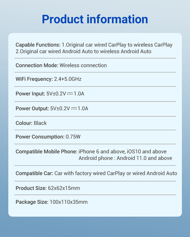 Nombre del producto:Adaptador inalámbrico CarPlay