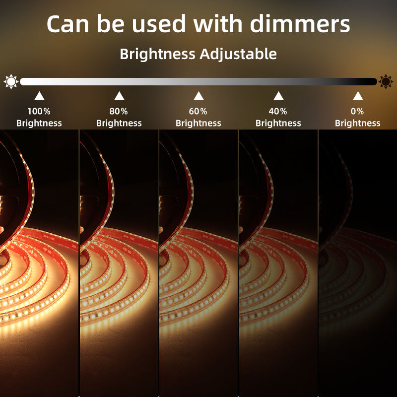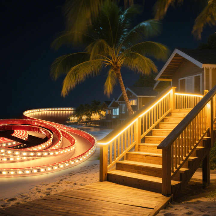 Tira de LED 2835 para Exteriores OEM, Impermeable IP67, 220V/110V, 120 LED/M, Alto Brillo, Sin Parpadeo, Regulable, Continua, 50m de Longitud
