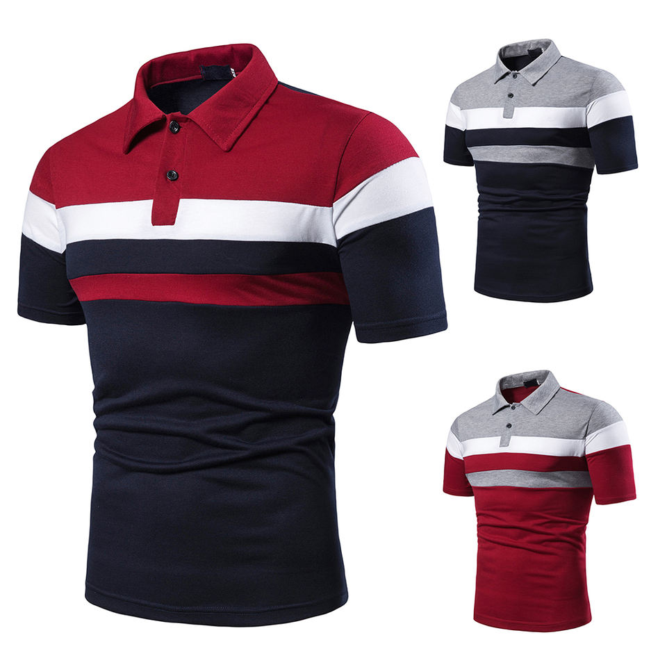 Camisa Polo de Manga Corta con Solapa de Color Patchwork OEM, Bordado Empresarial, Algodón, Nueva Tendencia de Moda, Camisas Polo Tipo Pullover
