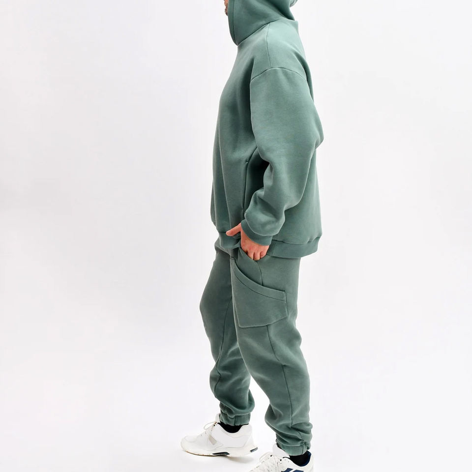 Conjunto Deportivo Personalizado con Logotipo OEM para Hombre | Sudadera con Capucha y Pantalones Deportivos de Forro Polar 100% Algodón para Invierno