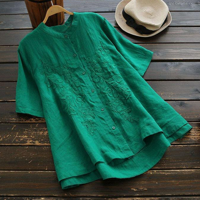 Camiseta OEM estampada modesta para mujer de talla grande para primavera y verano blusa superior al por mayor de la mejor calidad con decoración de botones ODM