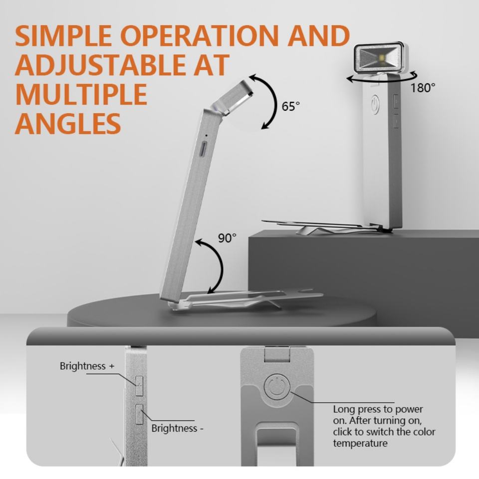Luz de Bolsillo OEM de Estilo Moderno, Plegable, con Brillo Ajustable, Fuente LED, Batería, Negra y Blanca, para Sala de Lectura