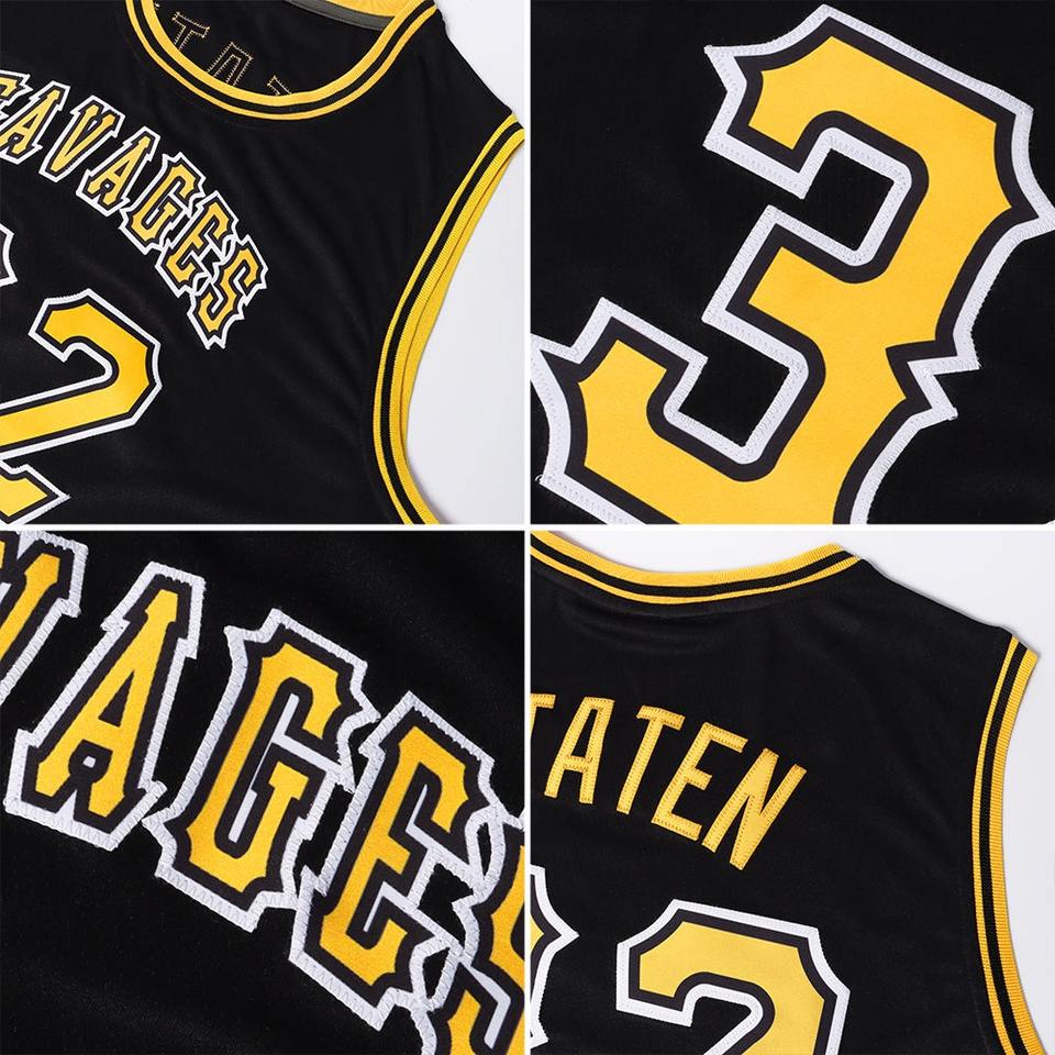 Jersey de baloncesto de sublimación en color negro, dorado y blanco