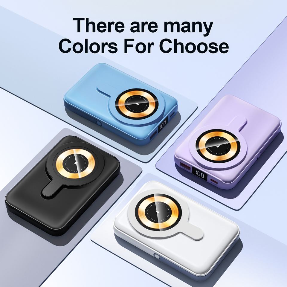 Batería Externa Portátil OEM de 10000mAh con Carga Rápida PD de 22.5W, Cargador Inalámbrico, Mini Soporte Magnético
