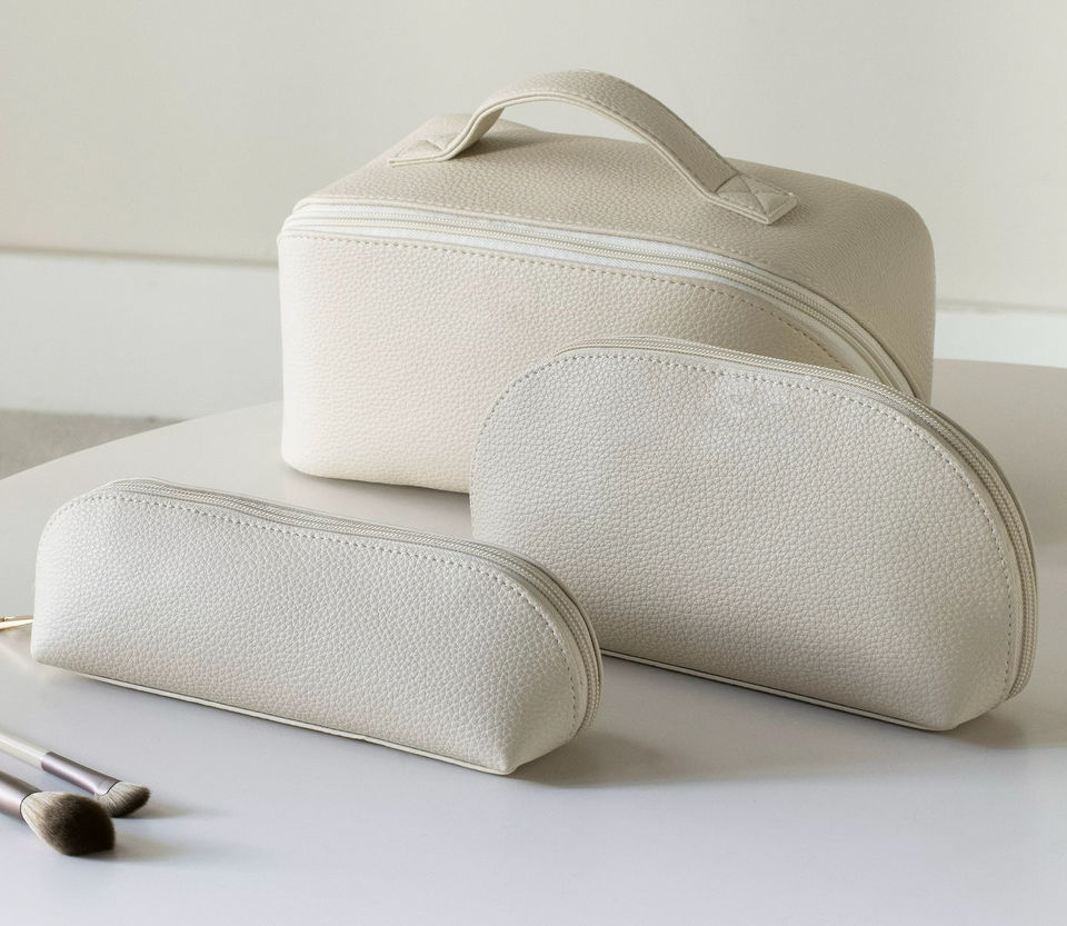 Bolsa de maquillaje de piel sintética portátil OEM con cremallera, gran capacidad, logotipo personalizado, funda de lujo impermeable, maquillaje de viaje para niñas de estilo bonito