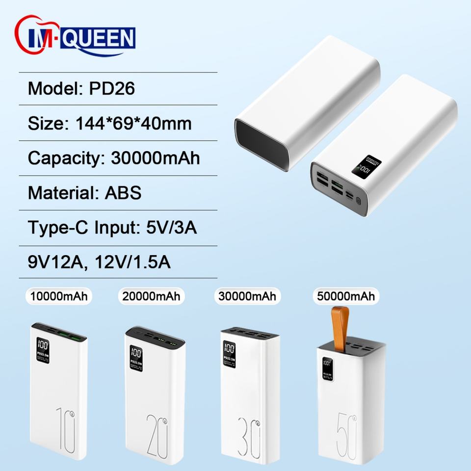 Batería Externa Portátil OEM de Alta Capacidad 30000mAh con Salida Tipo-C 10W, Pantalla Digital y Carga Rápida PD 22.5W para Teléfono