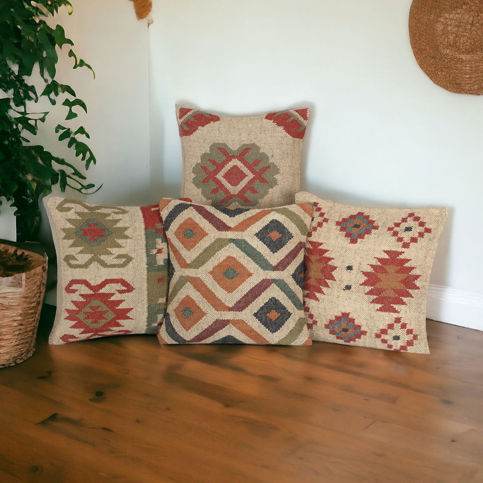 Alfombras JAIPUR KILIM, Alfombras Turcas Modernas de Lana y Yute Hechas a Mano, Ecológicas, con Patrón Geométrico, Fundas de Almohada Personalizables, Estilo Rústico Lumbar