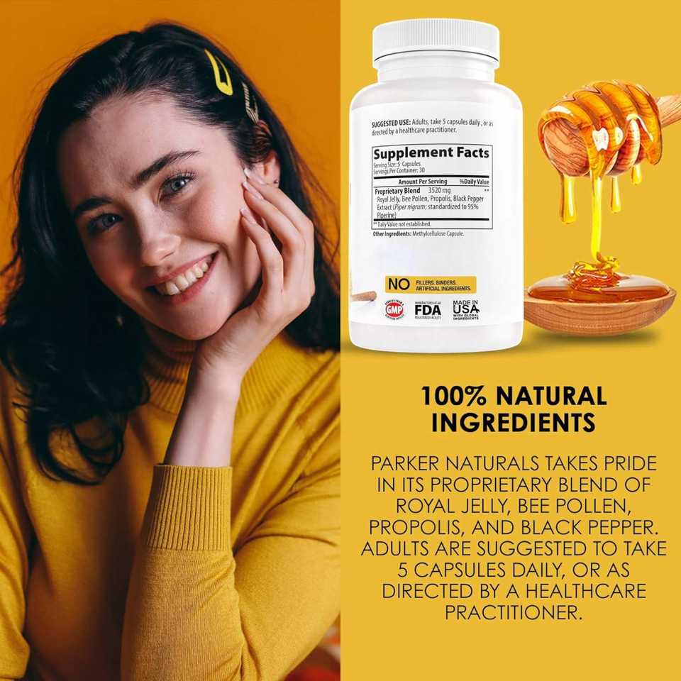 Cápsulas de extracto de polen de abeja de jalea real de propóleo orgánico no OGM personalizadas con etiqueta privada OEM