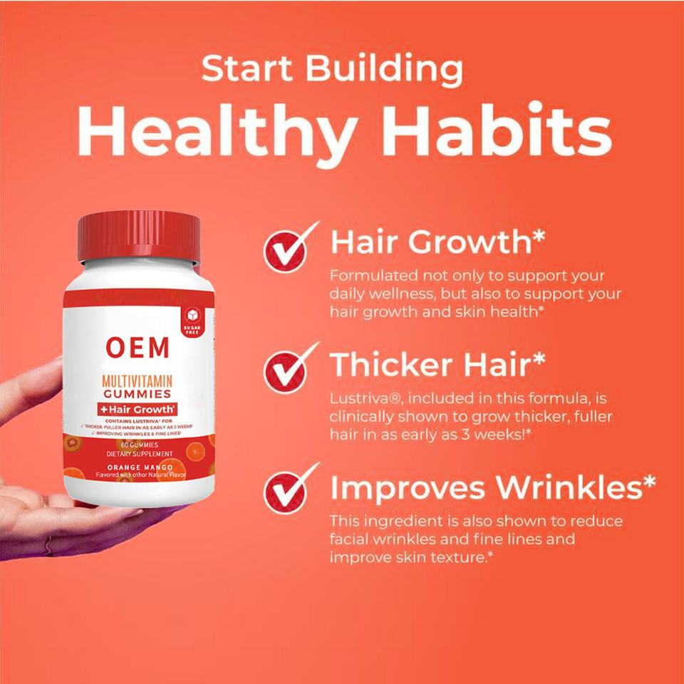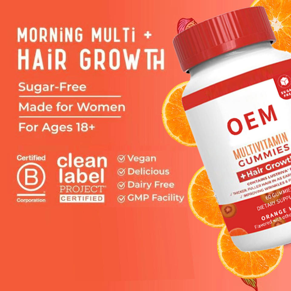OEM Etiqueta Privada dietética sin azúcar mejora las arrugas 60 vegano crecimiento del cabello vitaminas multivitaminas gomitas suplemento para mujeres
