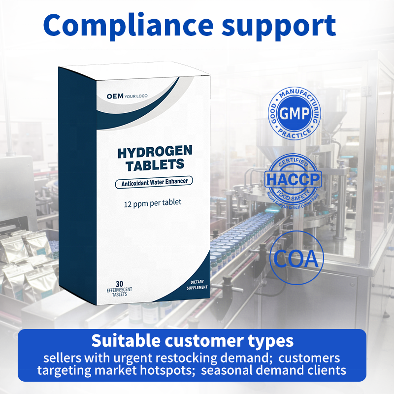 Fabricante de Tabletas de H2 de Alta Concentración y Disolución Rápida, Marca Privada OEM, Suministro Estable a Largo Plazo para Comerciantes Internacionales