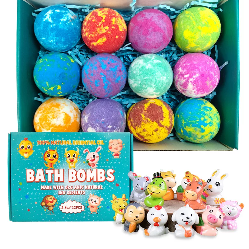 Bombas de Baño Efervescentes Naturales Hechas a Mano con Etiqueta Privada OEM para Niños, Bombas de Baño Divertidas con Juguetes en el Interior
