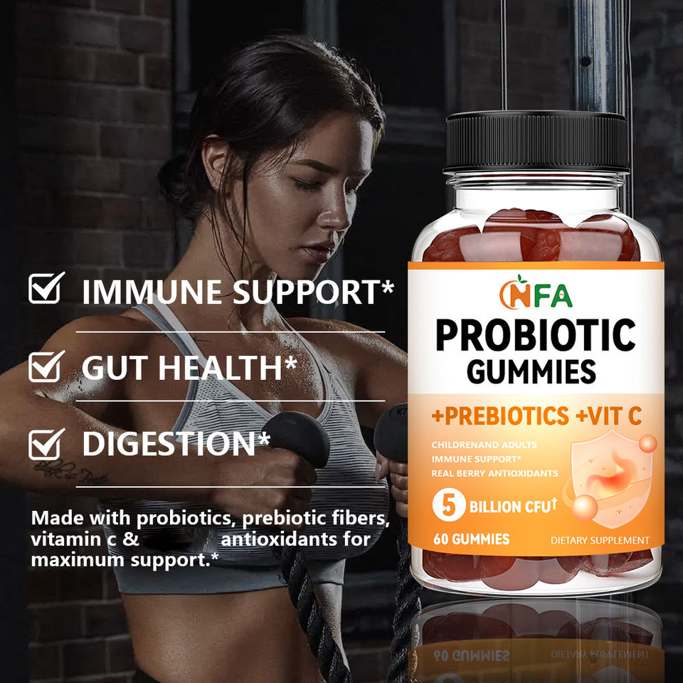 Gomitas probióticas de Salud de etiqueta privada OEM, prebiótico, vitamina C, apoyo inmunológico para niños y adultos, gomitas antioxidantes de bayas reales