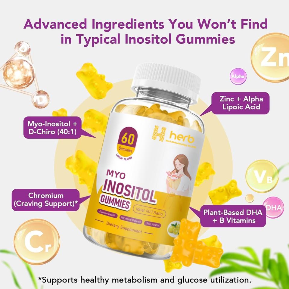 Gomitas de Inositol de Marca Privada OEM para el Equilibrio Hormonal y Apoyo a la Fertilidad con ALA, Vitamina D3, B12 y Cromo