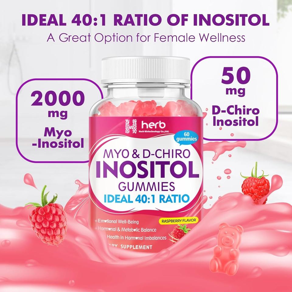 Gomitas de Inositol de Marca Privada OEM para el Equilibrio Hormonal y Apoyo a la Fertilidad con ALA, Vitamina D3, B12 y Cromo