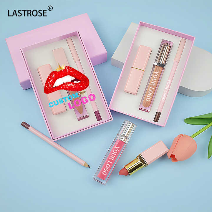 Kit de Maquillaje Labial de Marca Privada OEM 3 en 1: Lápiz Labial Mate, Brillo Labial y Delineador de Labios, Larga Duración, Resistente al Agua, Vegano