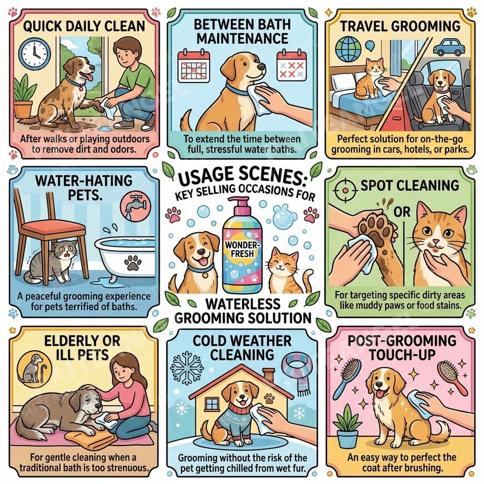 Espuma de champú sin enjuague sin agua para mascotas de marca privada OEM