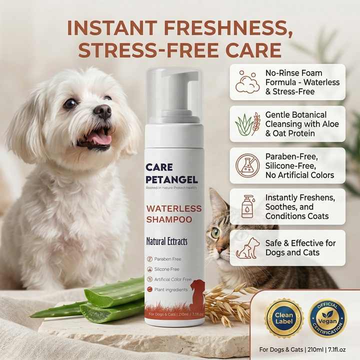Espuma de Champú sin Enjuague para Mascotas de Marca Privada OEM, Extracto Natural, Mousse de Limpieza Suave para Perros y Gatos con Aloe y Proteína de Avena