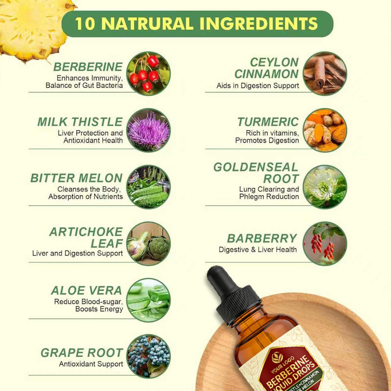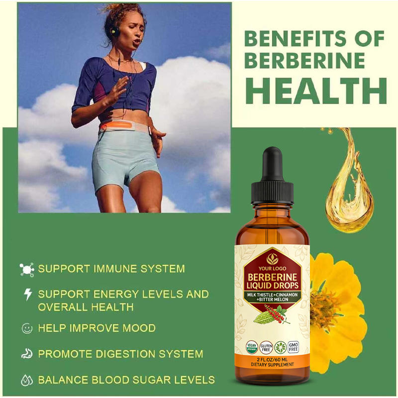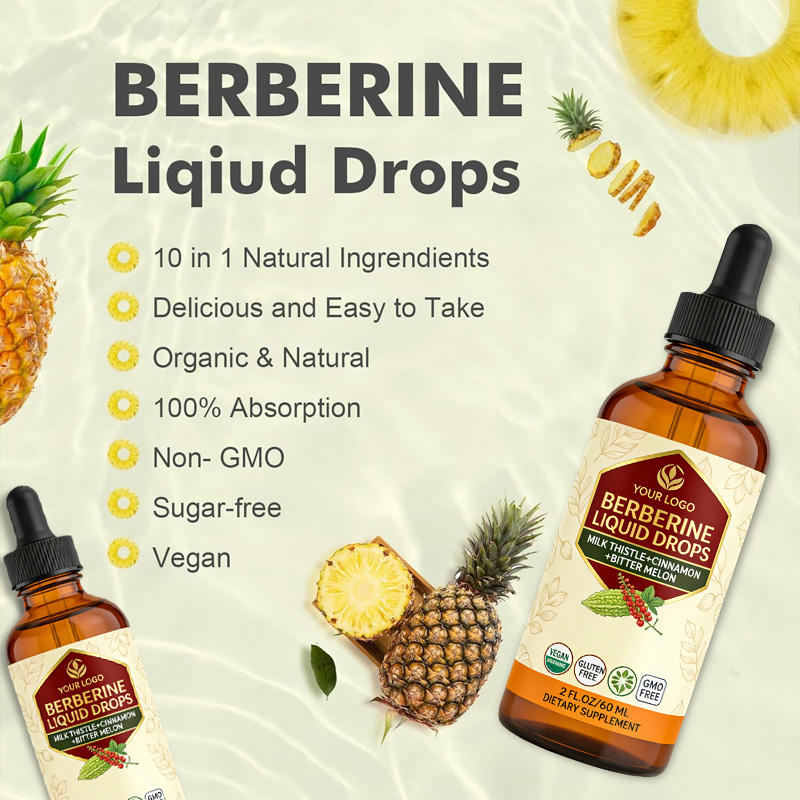 OEM Marca Privada Premium: Gotas Líquidas Orales de Complejo de Berberina con Canela de Ceilán para Apoyo en el Azúcar en Sangre, Salud Metabólica e Inmunidad en Adultos