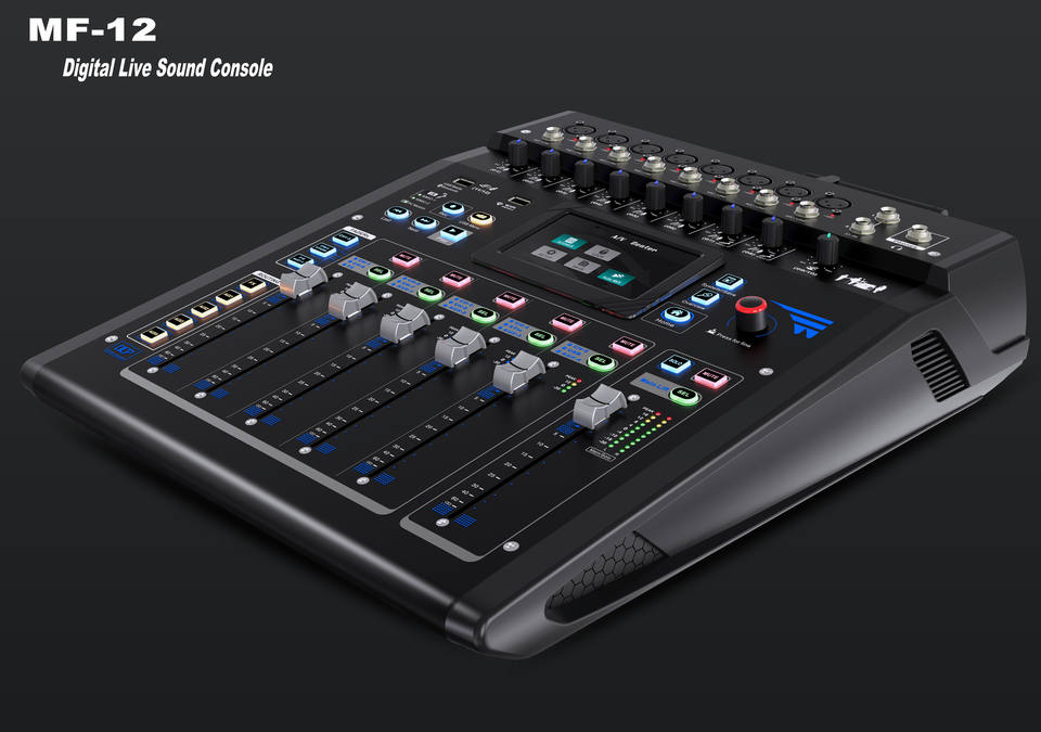 Mezclador de Audio Digital Profesional OEM MF-12 de 12 Canales con Efectos DSP de 24 Bits Grabación USB Pantalla Táctil Construcción de Metal Ecualizador de 5 Bandas
