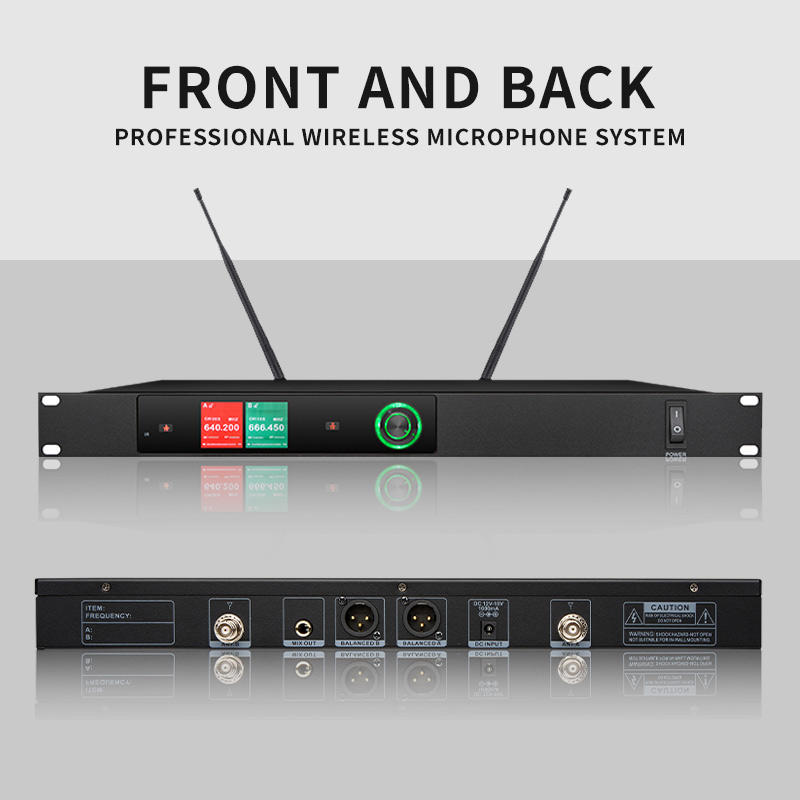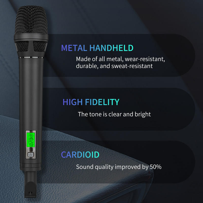 Micrófono Inalámbrico Profesional OEM de Mano, Ajustable, de 2 Canales, con Procesamiento de Sonido Dinámico, Micrófono Vocal para Reuniones