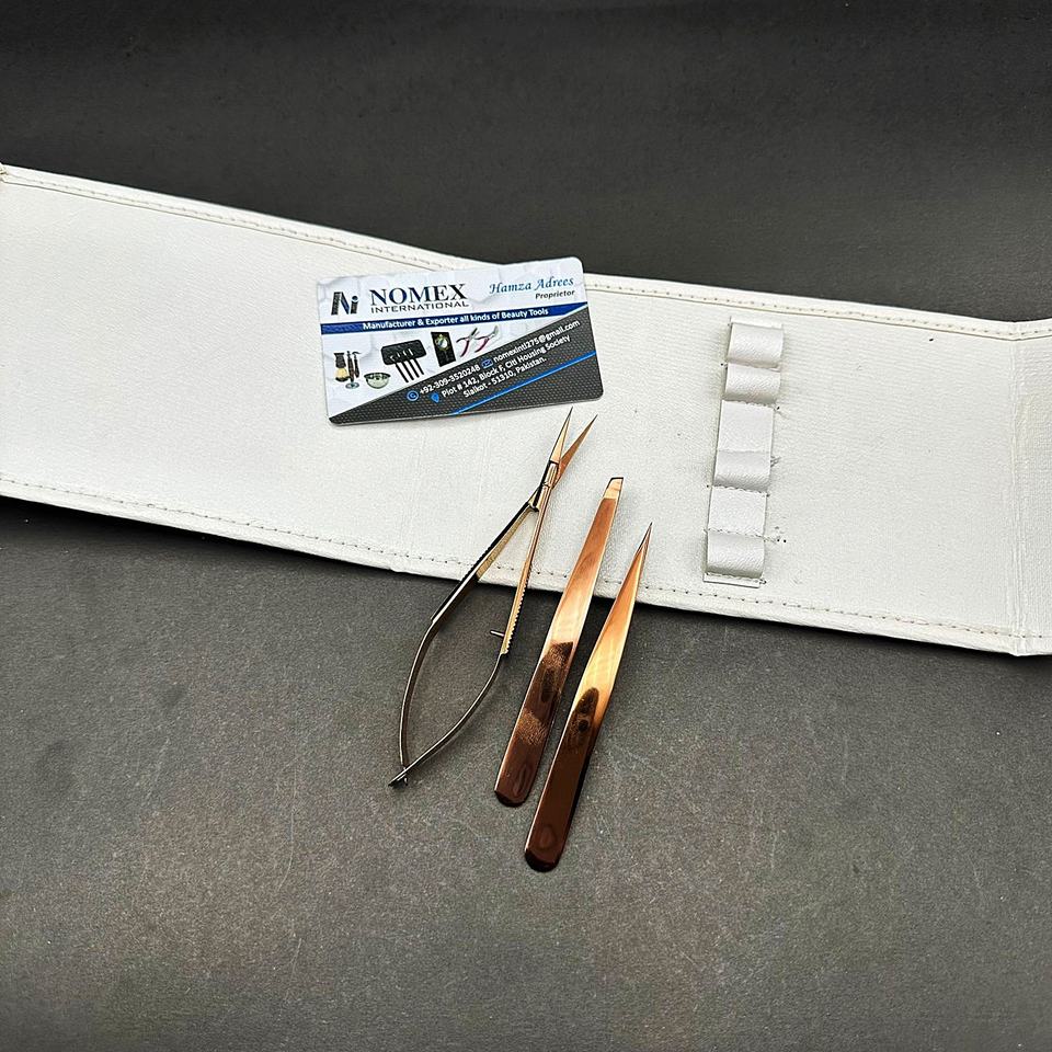 Pinzas puntiagudas profesionales de acero de alta calidad sostenible OEM, pinzas para pestañas para depilación de cejas de oro rosa con etiqueta privada