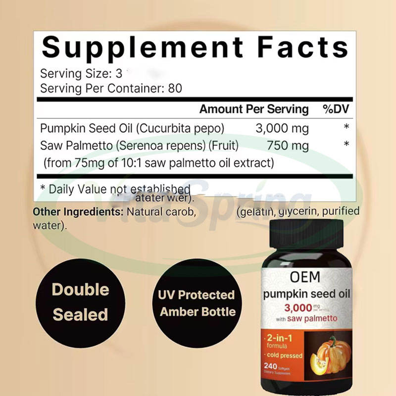 Muestra:Saw Palmetto y cápsulas de aceite de semilla de calabaza disponibles